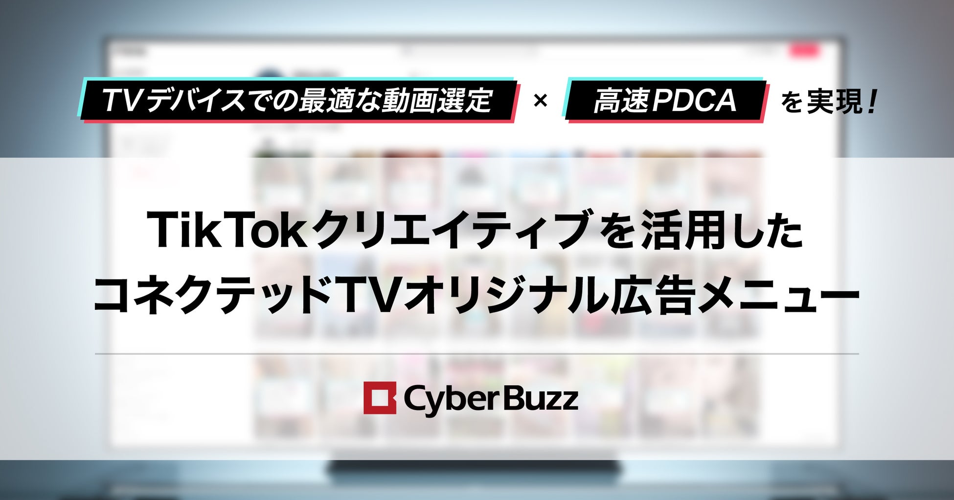 ソーシャルメディアマーケティング事業を展開する株式会社サイバー・バズ(本社:東京都渋谷区、代表取締役社長:髙村 彰典)は、当社運営メディア「to buy」とコネクテッドTV広告を連携させたオリジナル広告メニューを提供開始いたします。当社運営メディア「to buy」公式TikTokアカウント(https://www.tiktok.com/@tobuy_desu)で商品紹介をし、バズった縦型動画クリエイティブをコネクテッドTV広告のフォーマットに変換し、広告を配信いたします。TVCMでは困難な短期間かつ低コストでCMクリエイティブを検証し、TVデバイスでの最適な動画選定および高速PDCAの実現に繋げます。