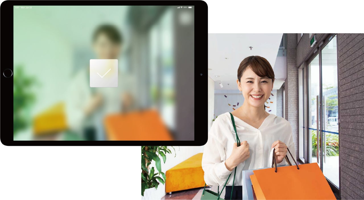 通常、エントランスのオートロックを解錠する為には鍵を使用する必要がありますが、本物件において入居者はタブレットに顔を向けるだけで簡単に「手ぶらで解錠」できます。マスク姿での認証にも対応しており、マスクが必須となるコロナ禍においても快適にご利用いただけます。