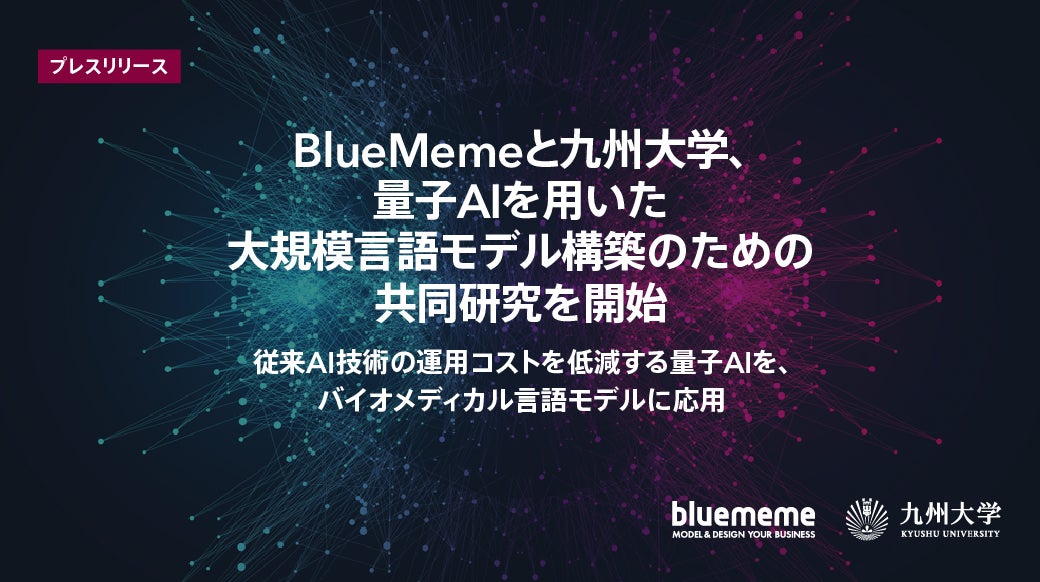 これを受けてBlueMemeは九州大学 長﨑正朗教授と連携し、量子AIを活用したバイオメディカル領域の言語モデルの開発と、社会実装に向けた性能検証を推進していきます。