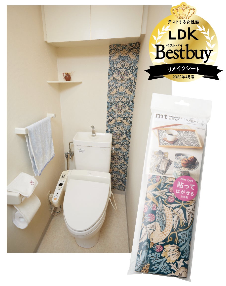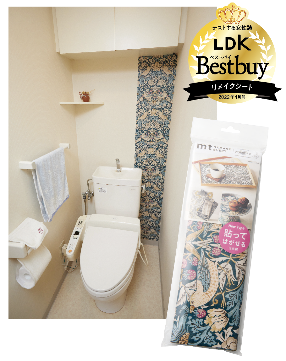 狭い空間で変化が付けにくいトイレもリメイクシートを貼ってアクセントを付けると高級感がアップ。見た目もよく貼りやすいものを探したところカモ井がベストバイに。まるで本物の壁紙のようなハイレベルでオシャレな壁が簡単に作れちゃいます。