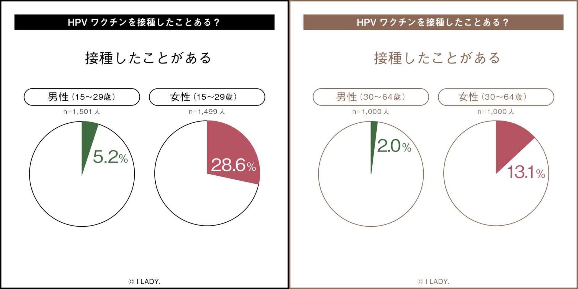 29歳以下の女性の7割、30歳以上の女性の約9割、男性(全体)の9割以上が子宮頸がんや肛門がんなどを予防するHPVワクチンを「接種したことがない(HPVワクチンを知らないも含む)」ということが分かりました。