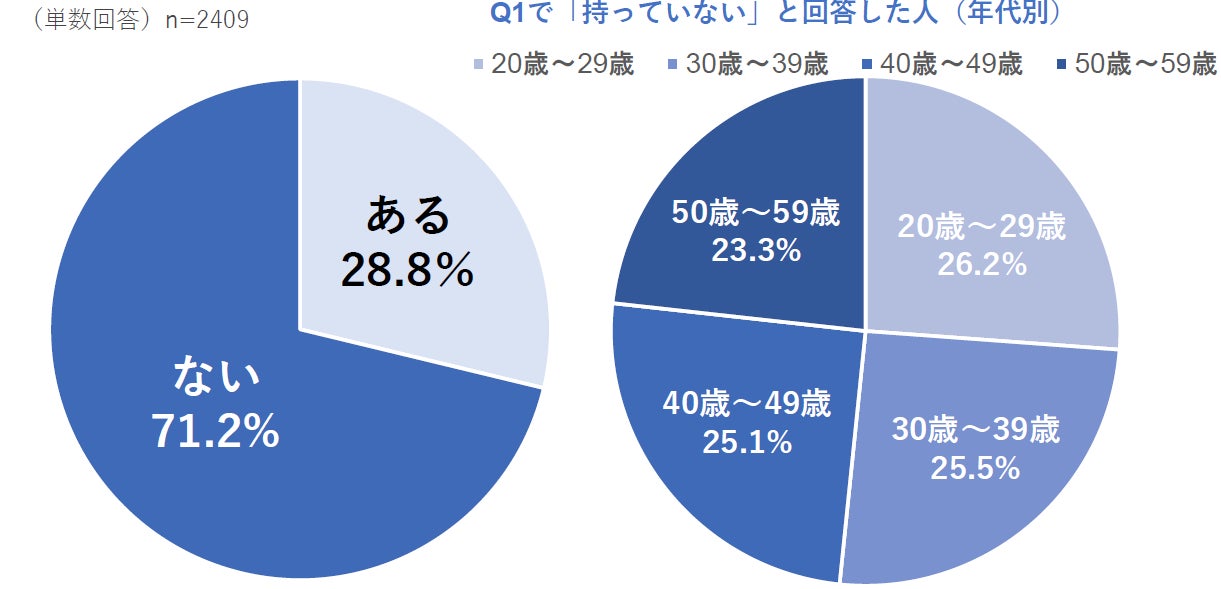 仏壇を持っていない方に調査するために20歳から59歳までの男女2409名に仏壇の有無についてアンケートを行ったところ、全体の約7割が自宅に仏壇がないという結果になりました。