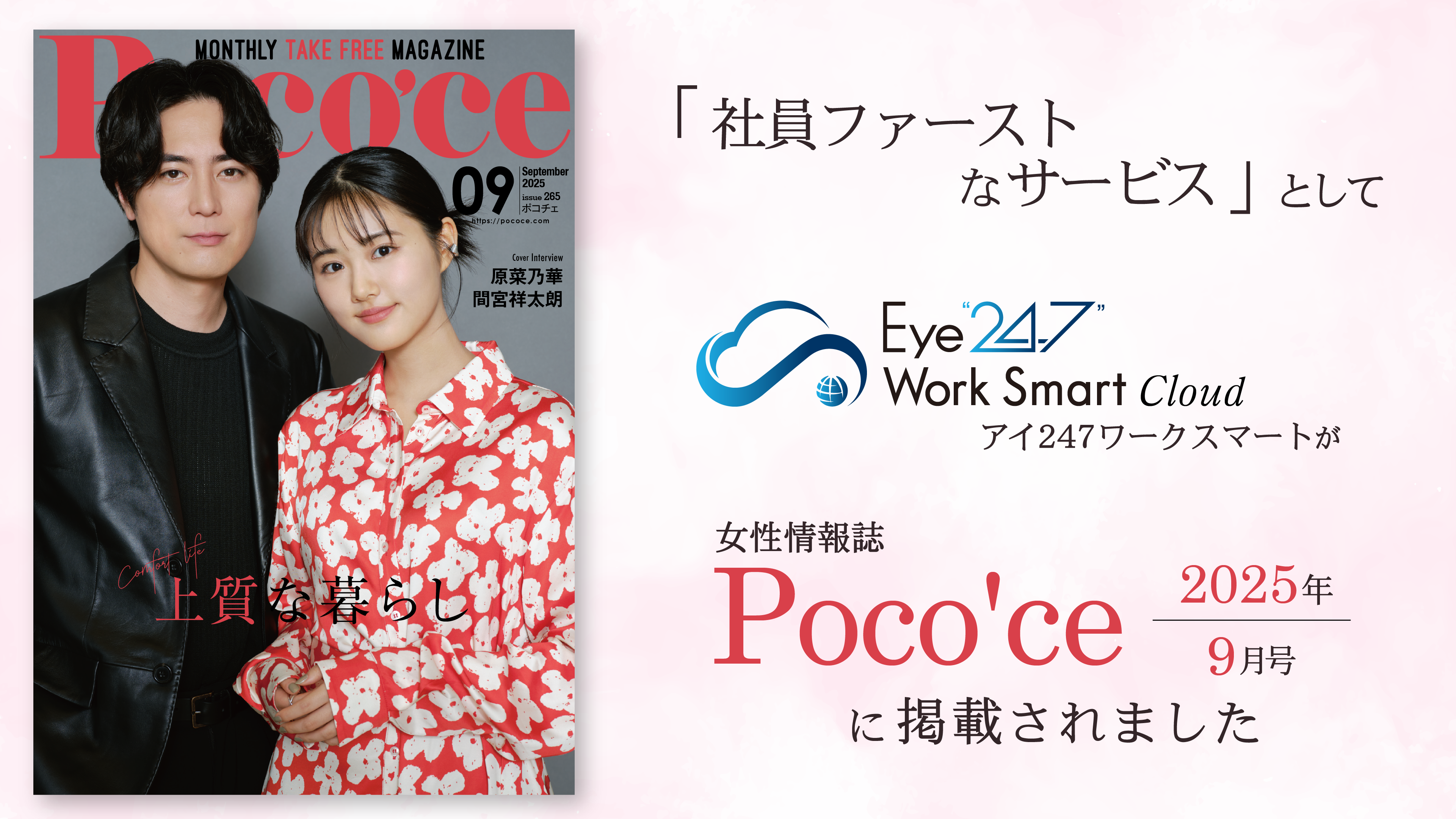 『Poco’ce(ポコチェ)』9月号に働く女性が望むサービスとして『Eye“247” Work Smart Cloud』が掲載されました。