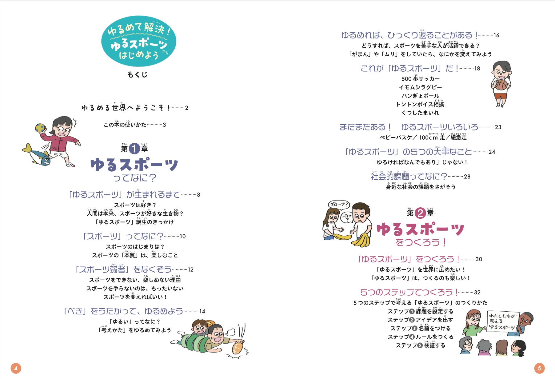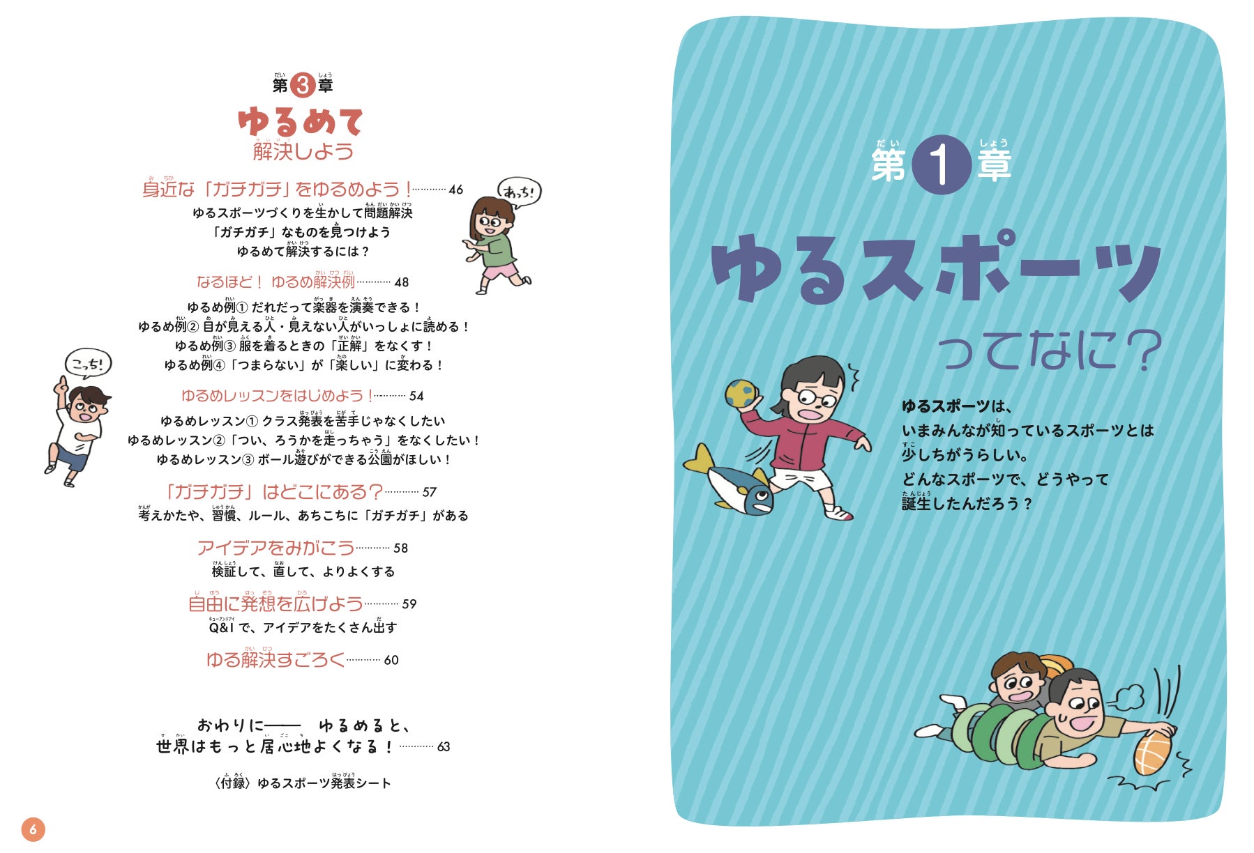 『ゆるめて解決! ゆるスポーツからはじめよう』は、「第1章 ゆるスポーツってなに?」「第2章 ゆるスポーツをつくろう」「第3章 ゆるめて解決しよう」の3部構成となっています。するするっと読めるけれど、読み応えたっぷりです。