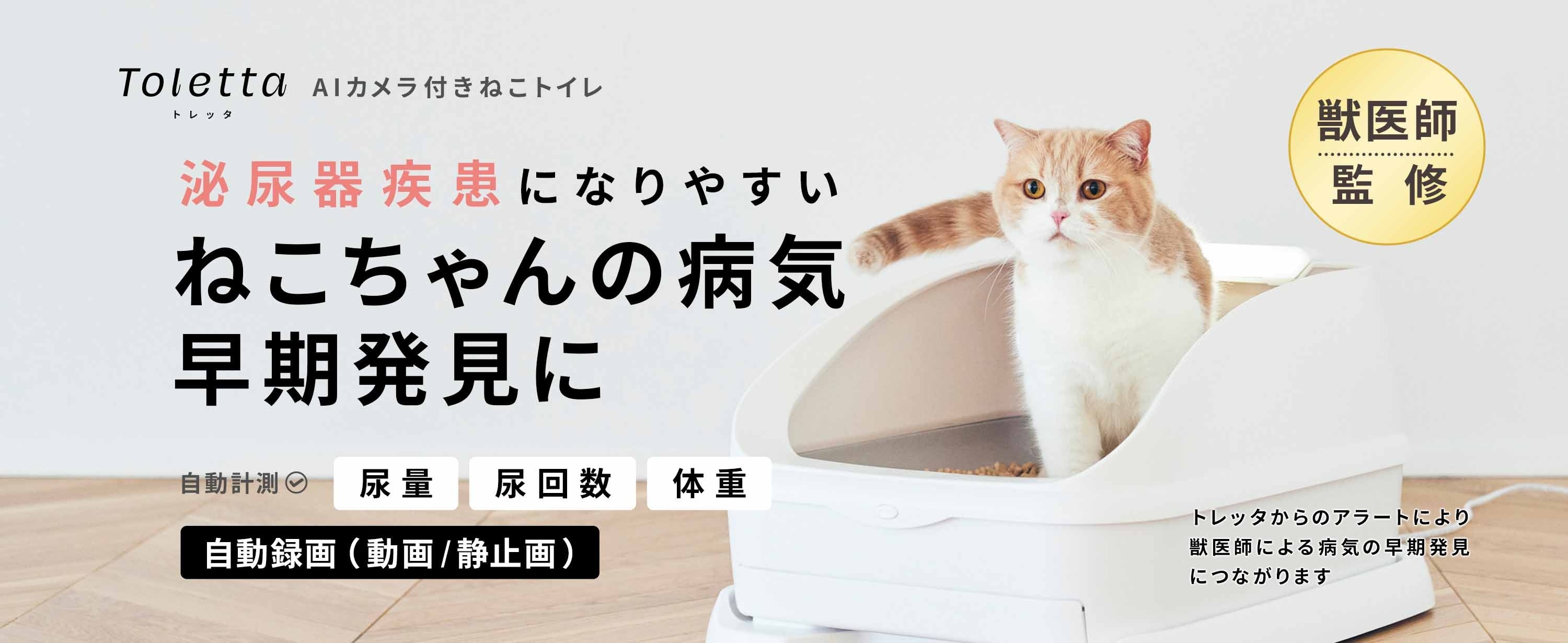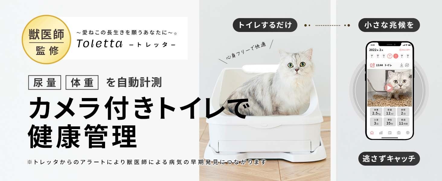 トレッタキャッツはこれからもより多くのねこの健康と幸せのために、カメラ付きIoTスマートねこトイレ「Toletta(トレッタ)」をはじめ、ねこの健康に寄与するサービスの開発に取り組み、飼い主様ひとりひとりがご家庭で簡単にねこの健康管理ができ、ねこが30才になっても元気に暮らせる社会を作ります。