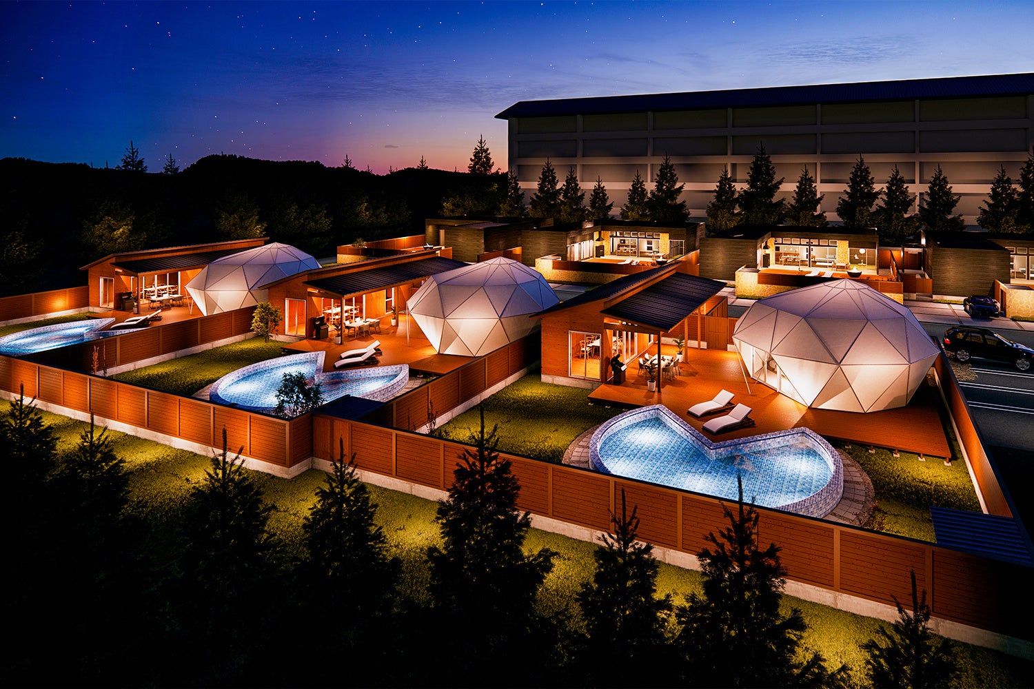 | ロイヤル グランピング | 3棟 | 約80㎡ ・ドームテント40㎡ ・食事・温泉棟約40㎡ |
