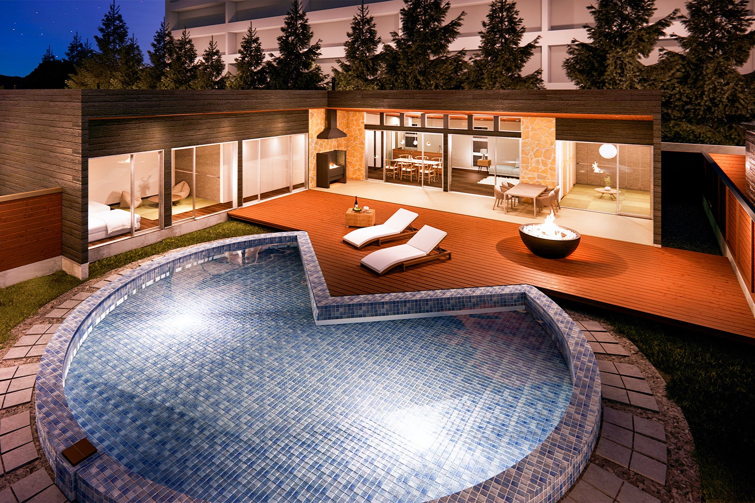 全棟プライベートプール、客室温泉、ファイヤーピットを備えた、これまでにないプライベート空間をお楽しみいただける施設となります。