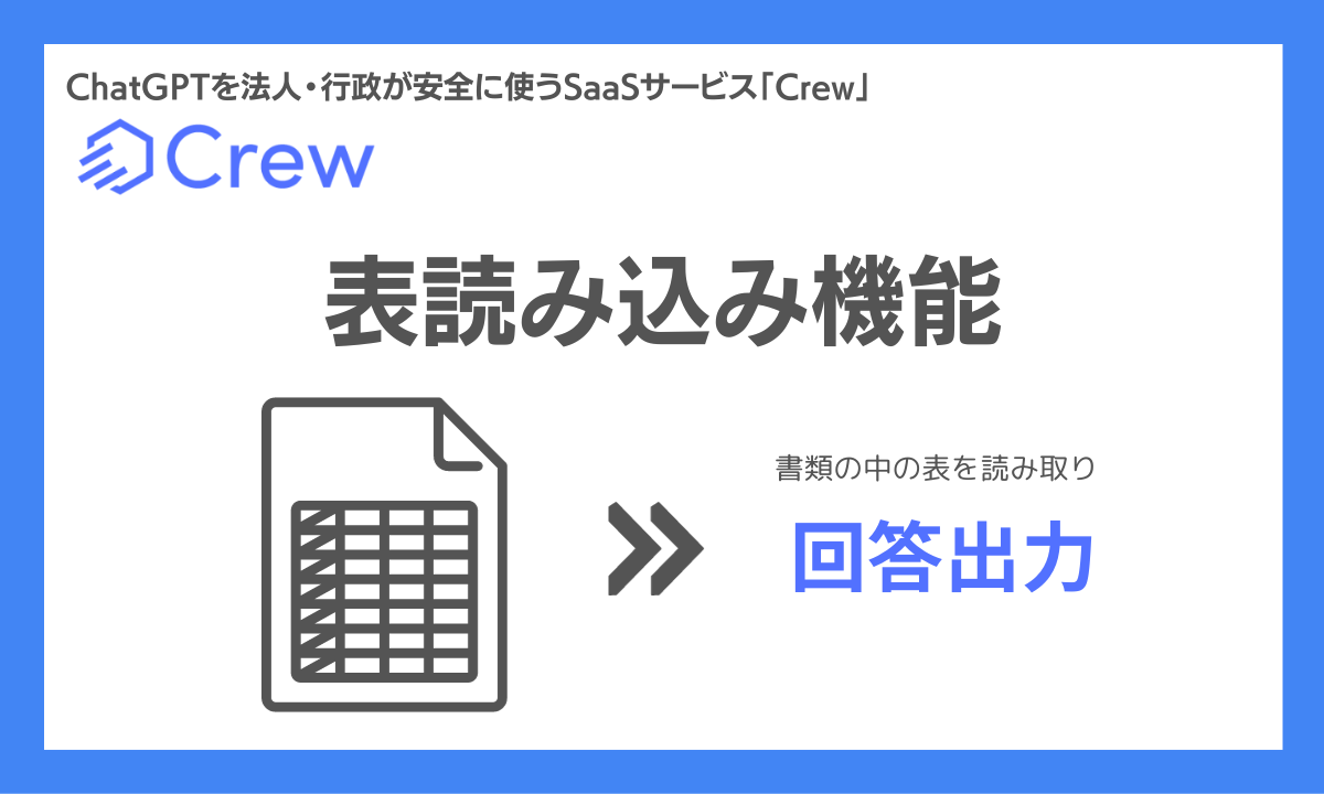 ChatGPTをビジネスで安全に活用する業務効率化ツール「Crew」書類の中の表を読み取る機能をリリース!お客様からのご要望が多かった新機能追加!