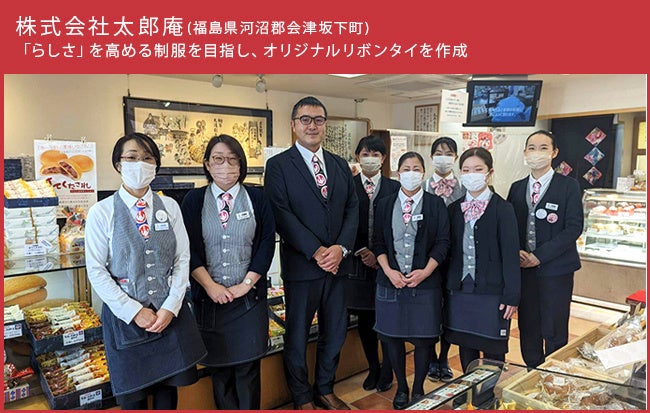 ユニフォーム専門商社の株式会社ユニフォームネットは、老舗和菓子・洋菓子店『株式会社太郎庵(福島県会津若松市)』の新リボンタイ作成協力を行いました。