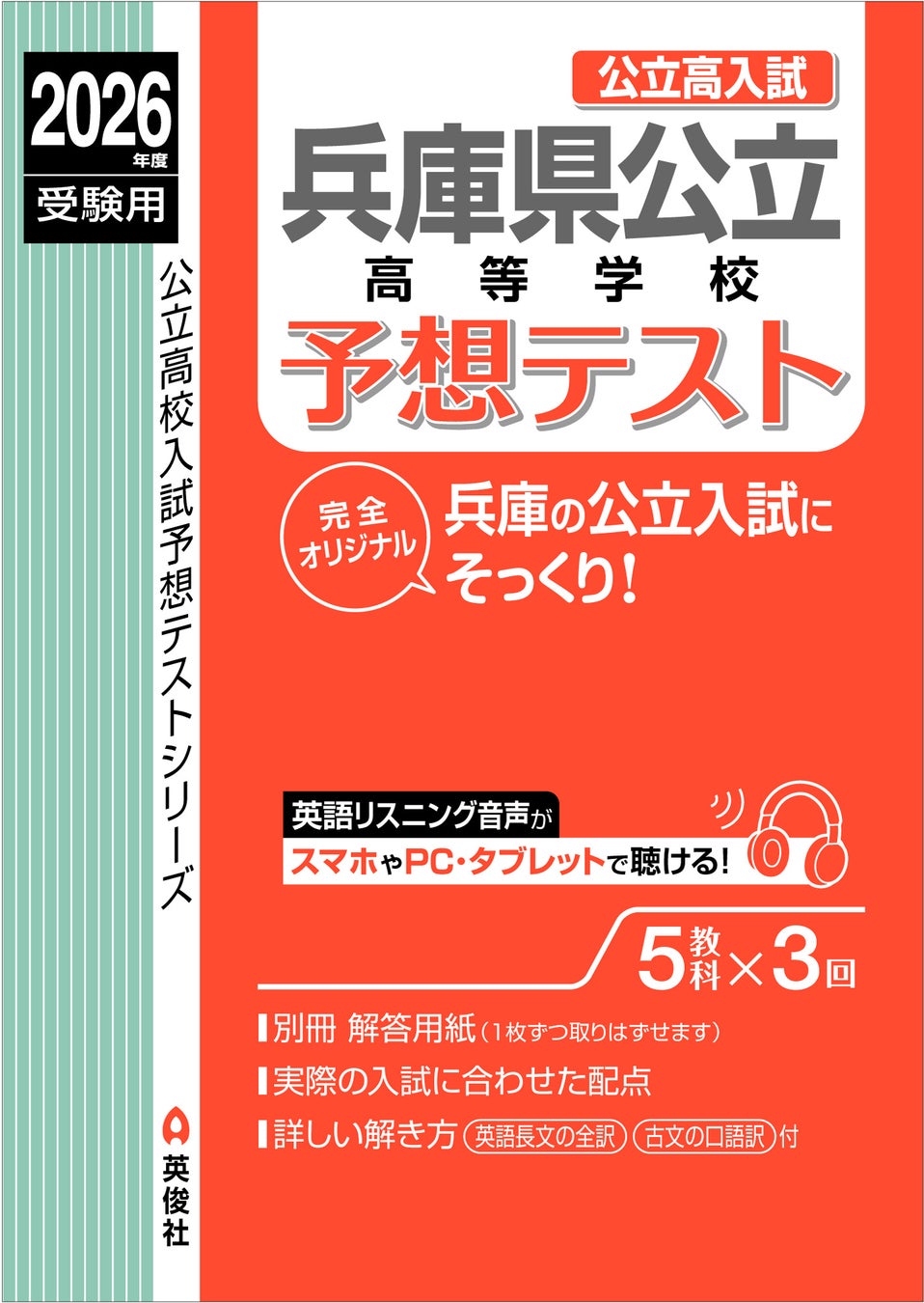 また、『兵庫県公立高等学校 予想テストWeb講座 2026年度受験版』は、英俊社から発刊されている「兵庫県公立高等学校 予想テスト 2026年度受験用」の、全3回分の一般学力検査の予想テストに対し、全問題のWeb解説講義を提供し、受験の総仕上げをサポートするWeb講座です。(2025年12月1日(月)開講予定)