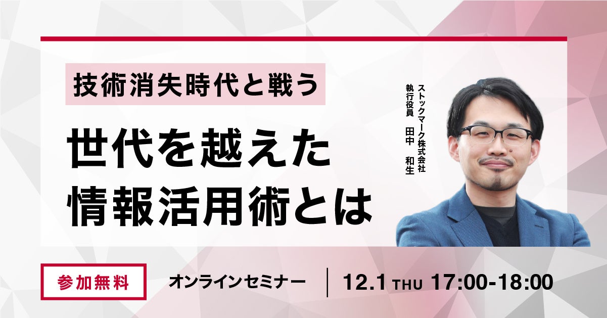 【12月1日(木) 無料セミナー】「技術消失時代と戦う 世代を越えた情報活用術とは」を開催(ストックマーク主催)