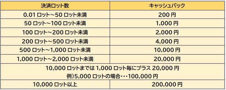 期間中にMT5で1回以上決済取引されたお客様にもれなくキャッシュバックいたします(最大20万円)。