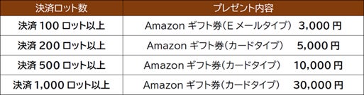 期間中のMT4決済取引ロット数に応じて、Amazonギフト券(最大3万円)をもれなくプレゼントいたします。