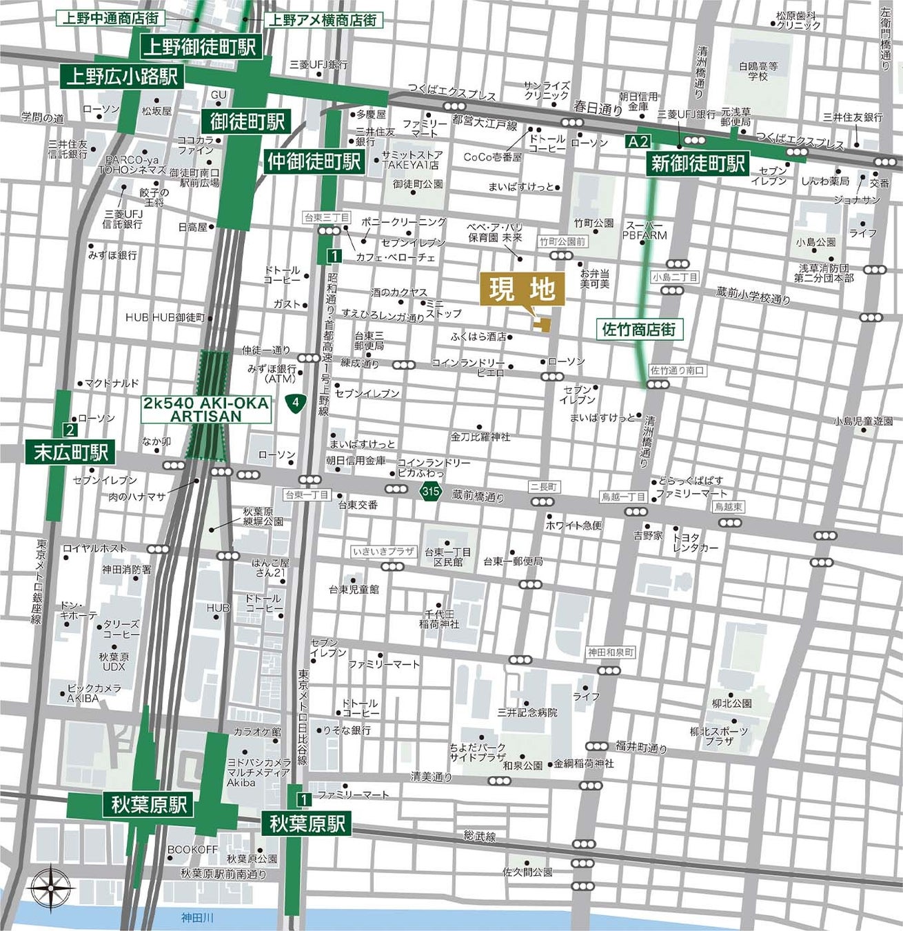 ルフォンプログレ上野御徒町(東京都台東区台東3丁目23番11号/住宅49戸、以下「本物件」という)は、秋葉原・上野の文化圏に近接し、利便施設が充実した暮らしやすい環境エリアに位置しています。東京メトロ日比谷線「仲御徒町」駅徒歩5分、都営大江戸線・つくばエクスプレス「新御徒町」駅徒歩5分、JR山手線「御徒町」駅徒歩8分と、複数路線が利用可能な交通利便性の高い立地です。上野・蔵前・浅草や、秋葉原のビジネス街にも徒歩通勤が可能な理想的な立地です。