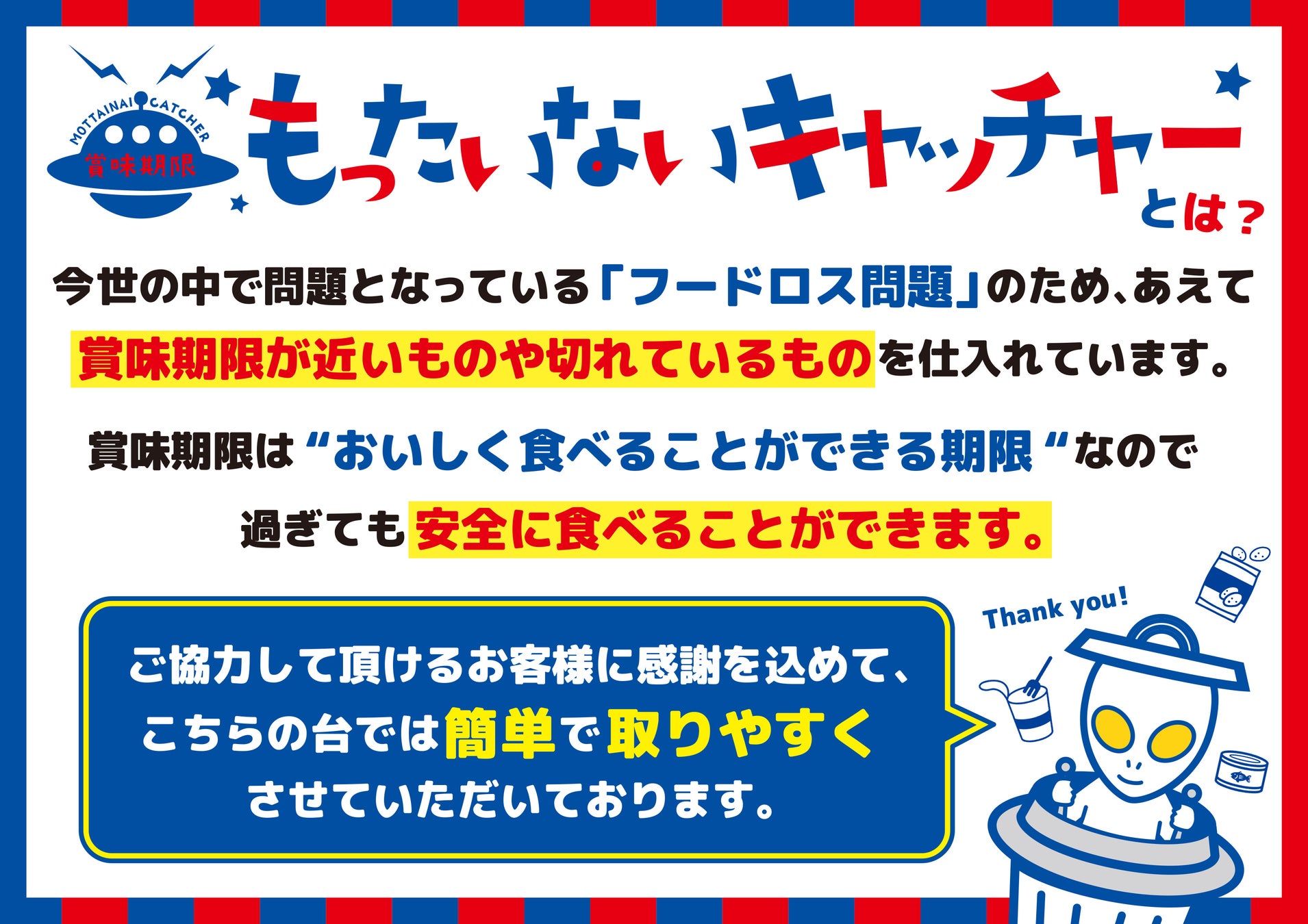 当社クレーンゲーム事業部で運営のクレーンゲーム専門店『エブリデイ』にて展開しているクレーンゲームです。賞味期限が残り少ないもの、賞味期限が過ぎてしまっているがまだ食べられるものを景品に使用し、通常のクレーンゲームよりも獲りやすくなっていることで、フードロス対策やSDGsに貢献するクレーンゲームとなっております。