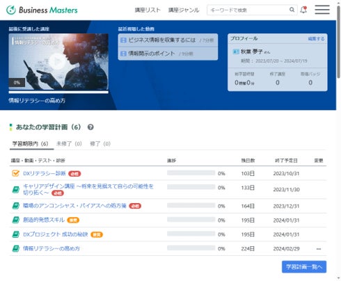 〜受講者自ら学習計画を立て学習意欲・効率UP!統合型教育研修プラットフォーム「ビジネスマスターズ®」で提供開始〜