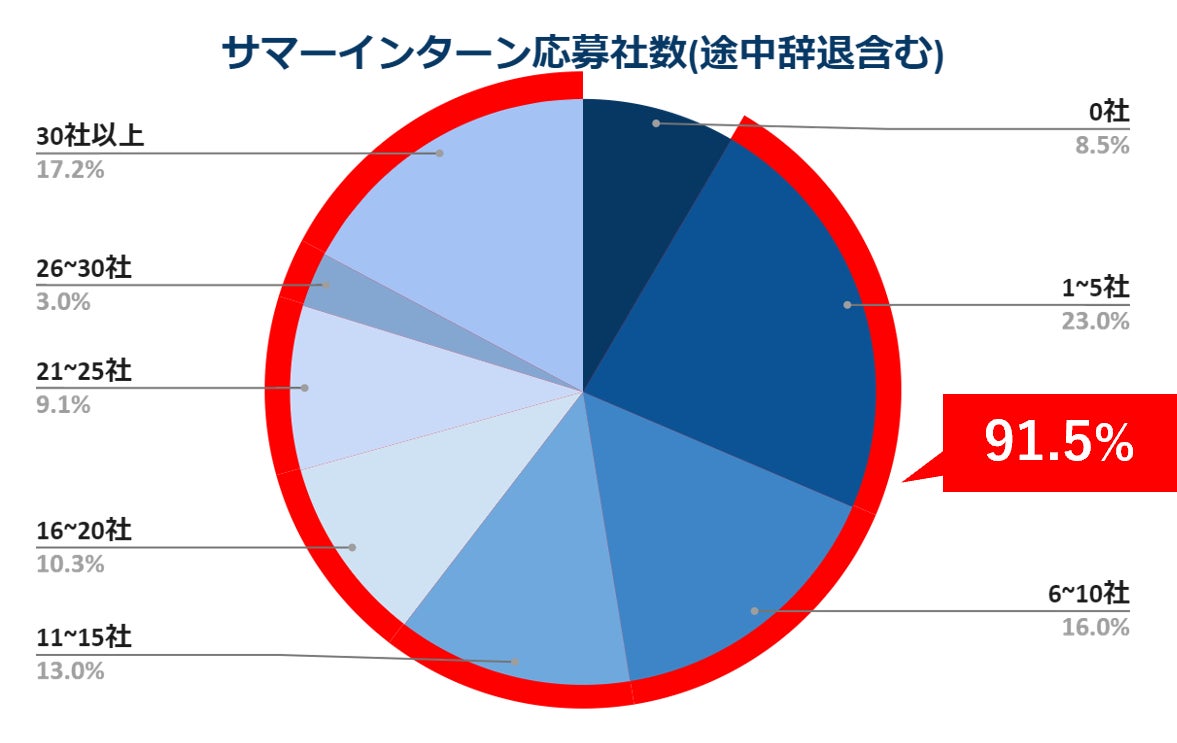 回答者のうち、91.5%は実際にサマーインターンに応募しています。これは昨年調査の24卒と比べても高い値でした。