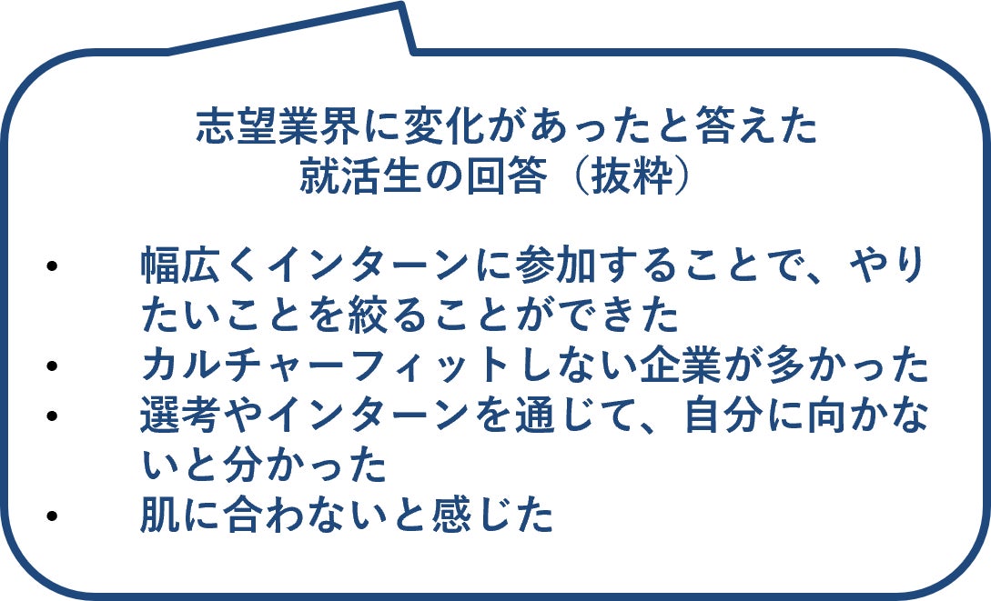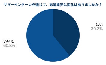サマーインターンを通して志望業界に変化があったかを聞いたところ、約4割が変化したと答えました。