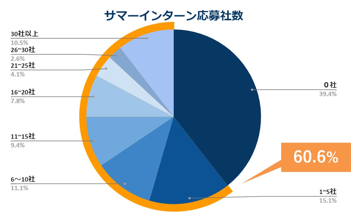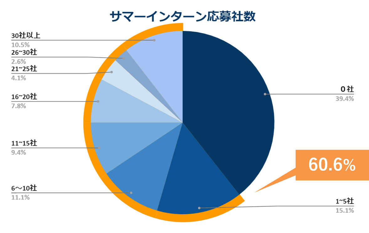 最多は「1~5社(23.0%)」、次点は「30社以上(17.2%)」という結果からも、サマーインターンに対する意欲の高さが伺えます。