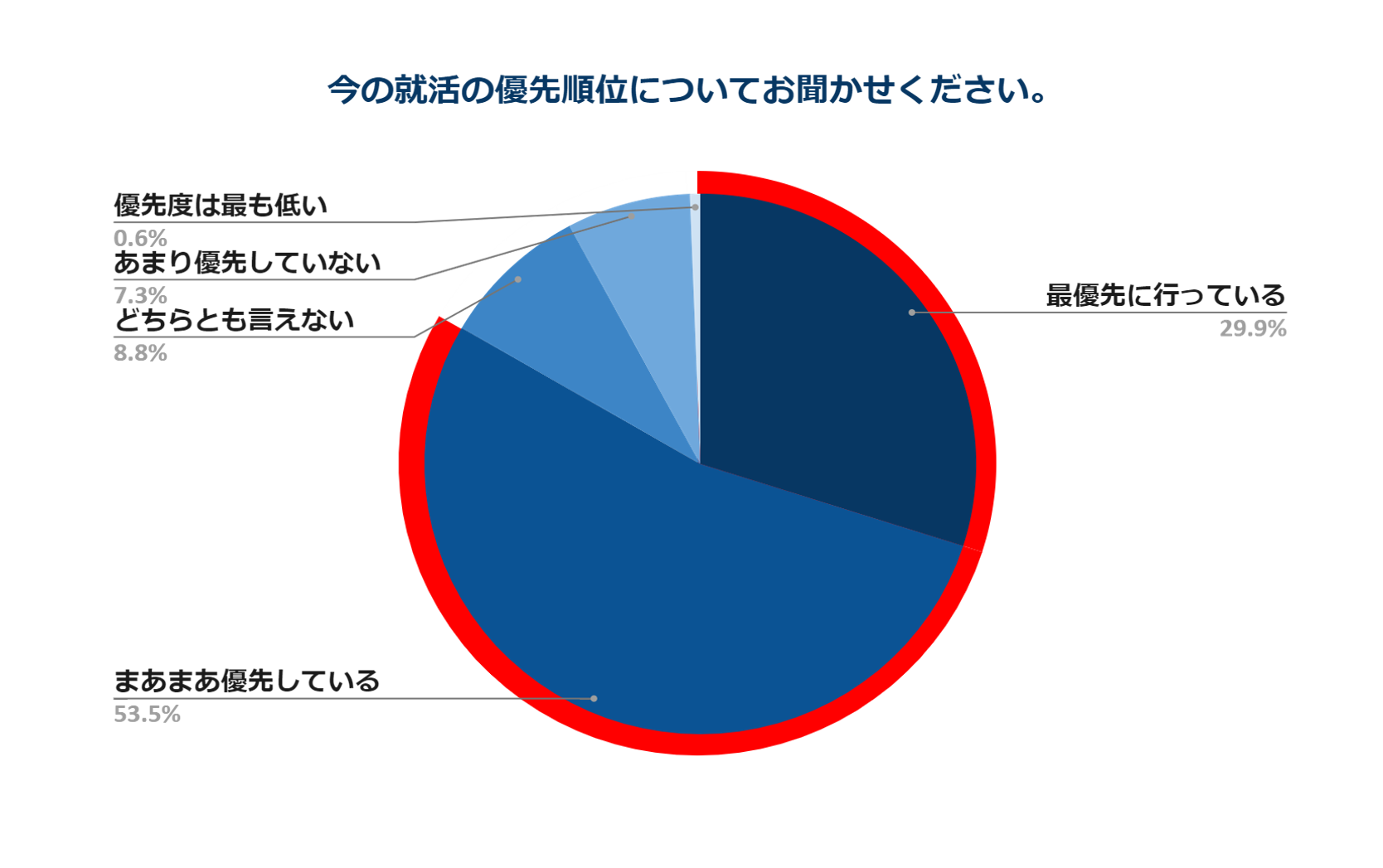 就活の優先順位に関して、「最優先に行っている」と「まあまあ優先している」を合算すると83.4%となり、