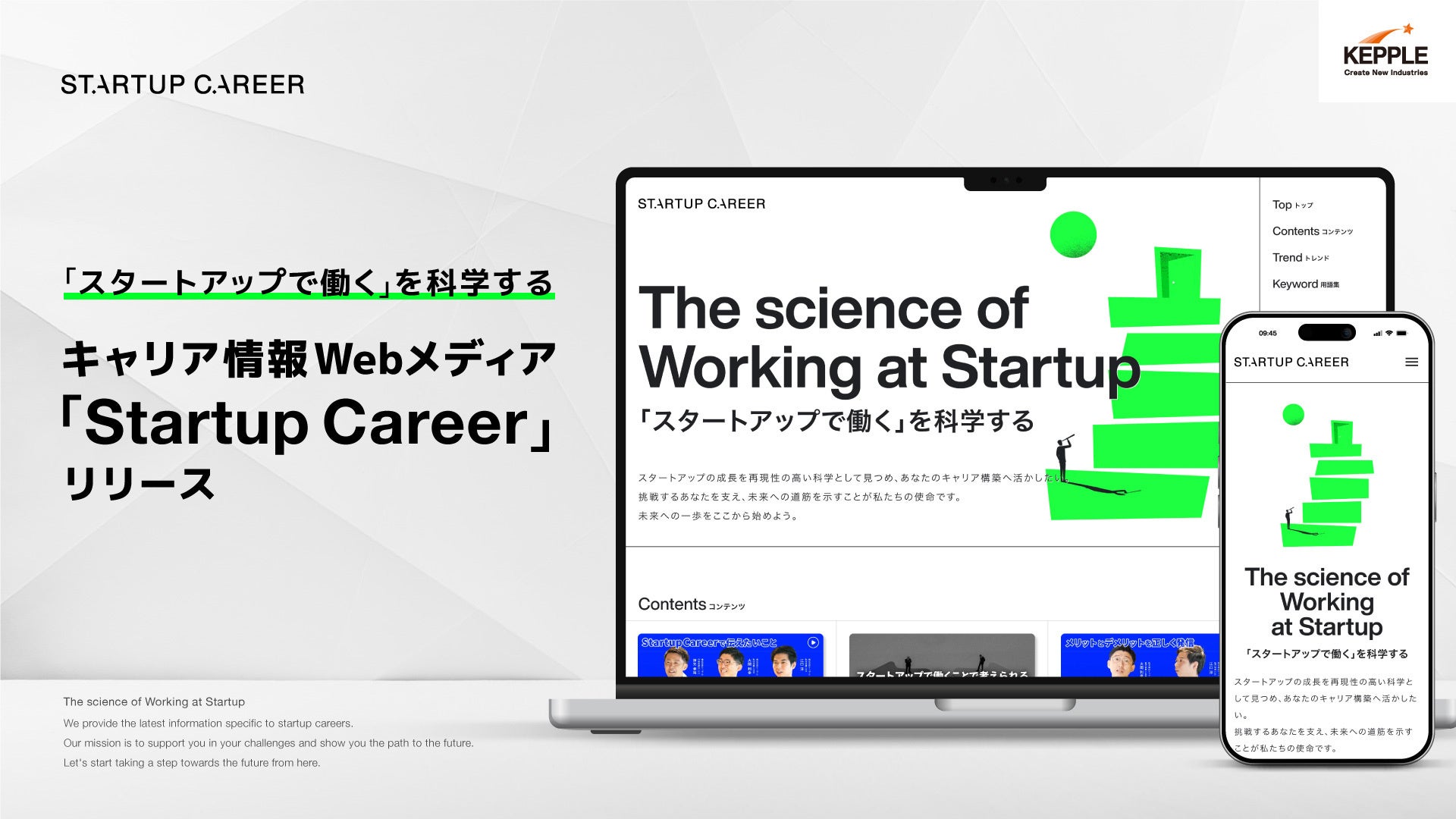 株式会社ケップル(代表取締役CEO:神先孝裕、以下「ケップル」)は、“「スタートアップで働く」を科学する”をコンセプトとした、キャリア情報Webメディア「Startup Career」をリリースしたことをお知らせします。