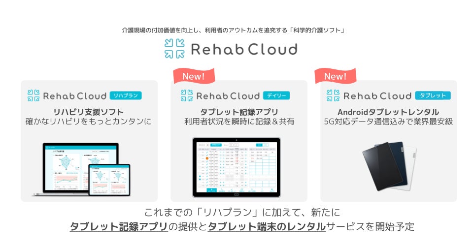新製品・サービスのリリースとともに、「リハプラン」から「Rehab Cloud」として、生まれ変わることになりました。