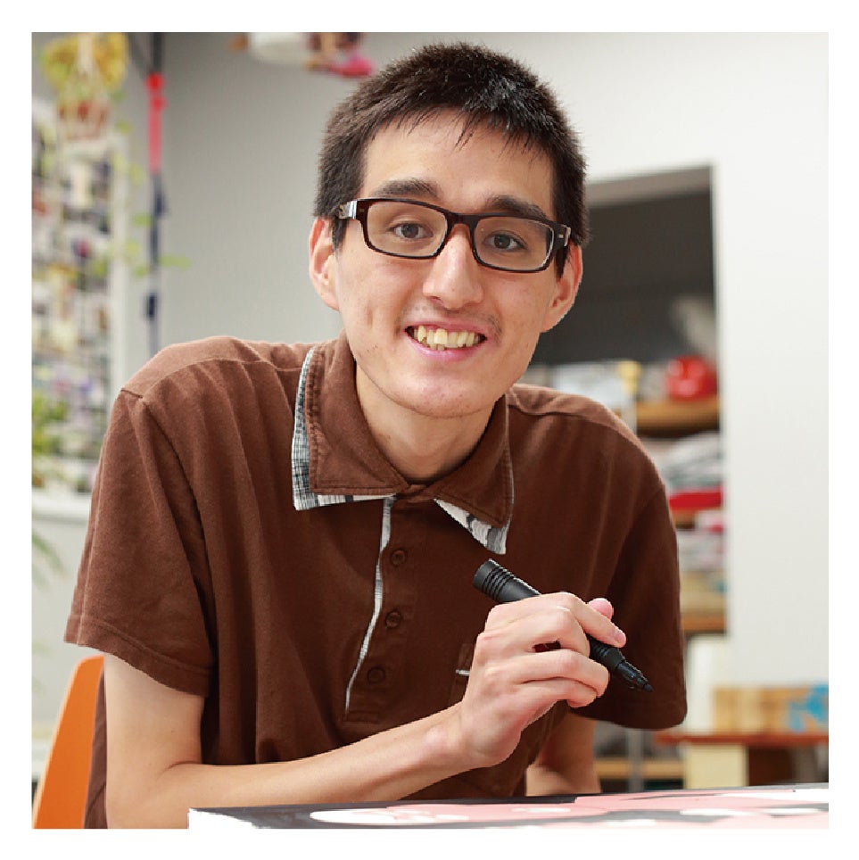 1994年生まれ。彼オリジナルのユニークな人物画は、迷いなく描く線と、独特のタッチでユーモアがあり特徴的な仕上がりに。