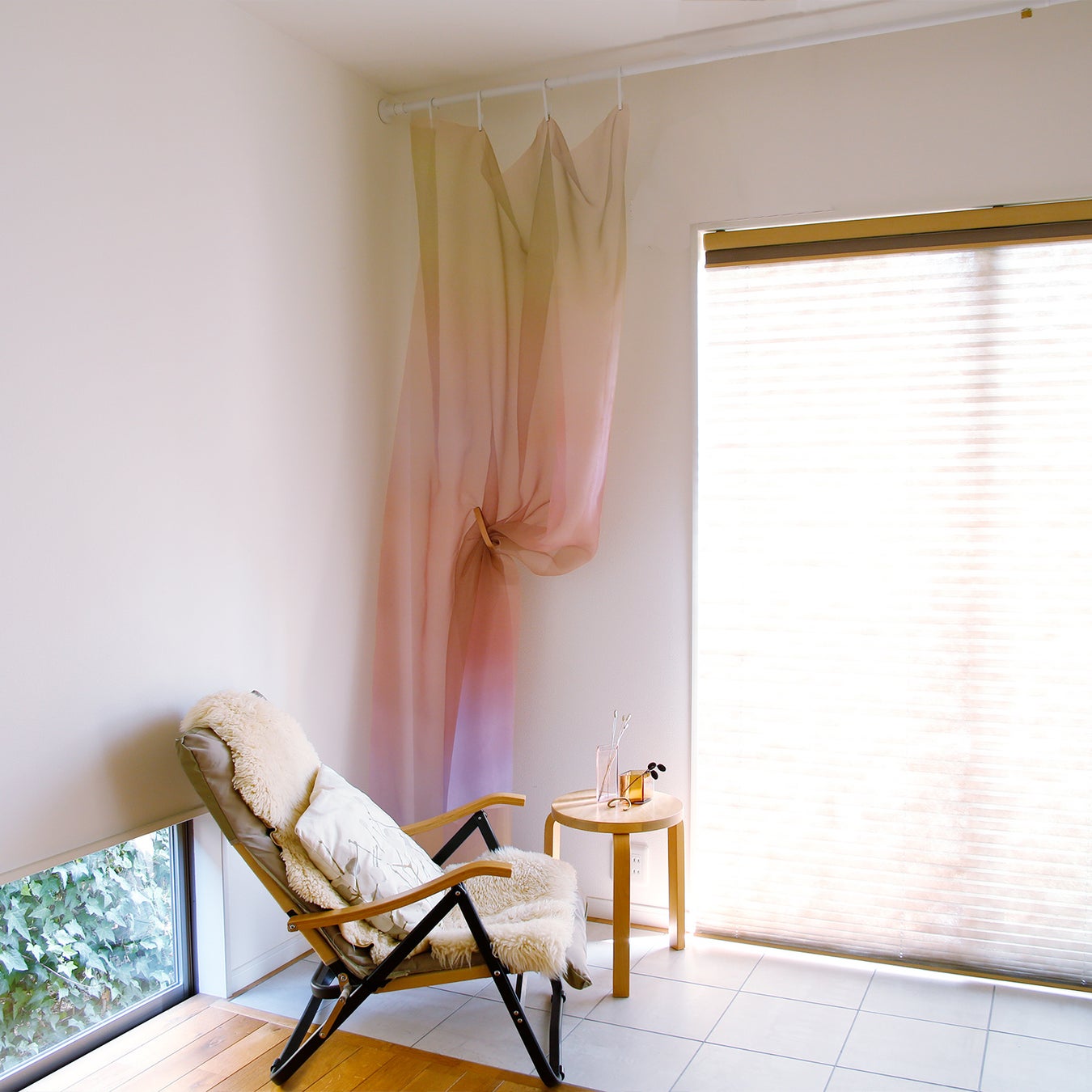 朝・昼・夕方で見え方が変わるグラデーション。 窓にも、間仕切りにも、インテリア布としても。