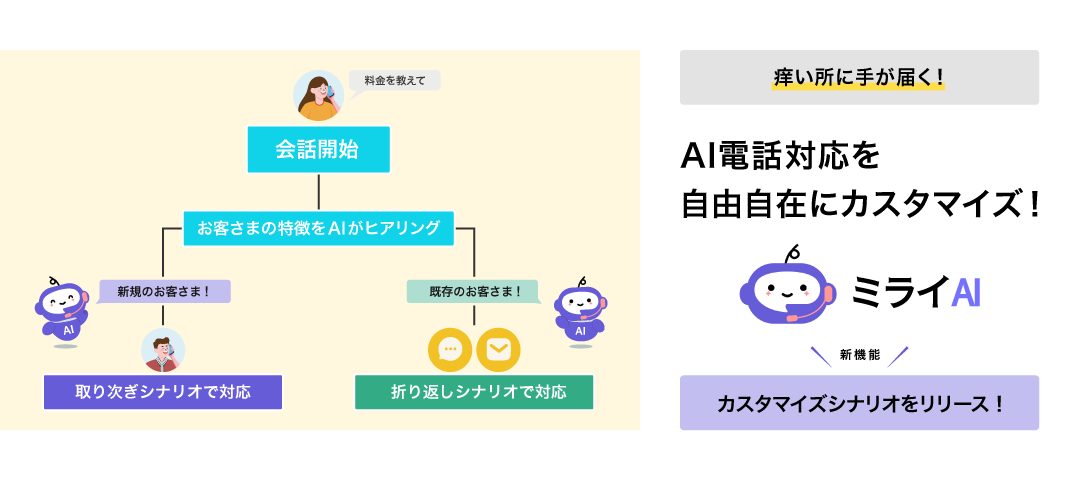 AIが電話取次を代行するミライAI、多様な顧客ニーズに応える新機能「カスタマイズシナリオ」を新たにリリース!