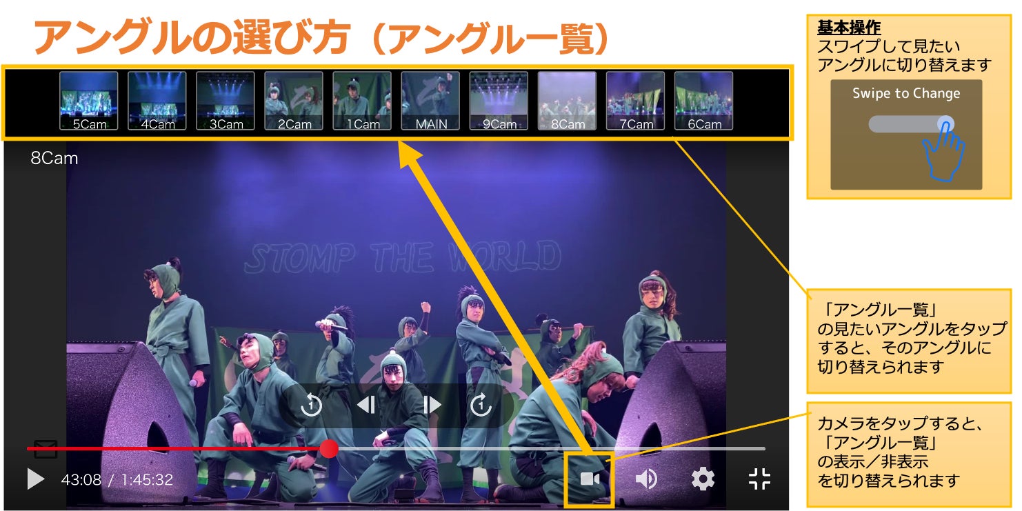 そして今回のライブ配信は、複数カメラの映像を自分の好きな視点に切り替えながら観られる配信システム“SwipeVideo”での配信となります。