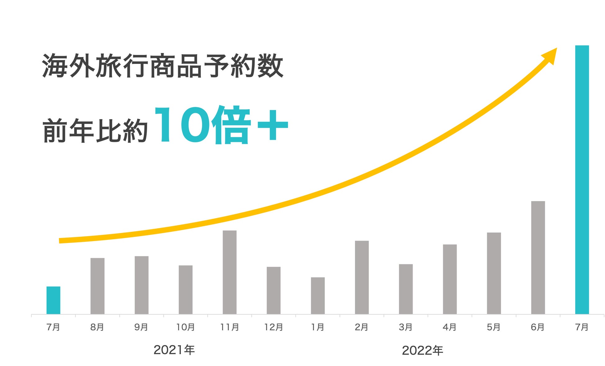 世界92カ国以上550都市の現地体験を提供するKKdayでも2022年以降、海外旅行関連の商品の予約が増加しており、2022年7月時点の予約数は前年同月比で約10倍増加しました。今後、日本においても帰国時の制限緩和が発表されるなど入国に関する制限緩和が続くことから、さらに予約数は増加するでしょう。