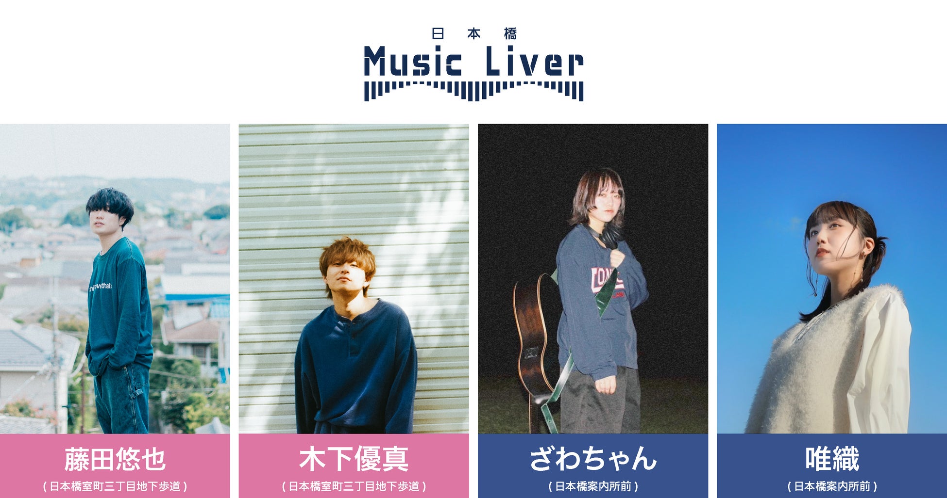 第十六弾となる今回、日本橋室町三丁目地下歩道会場では、オーガニックでアナログなサウンドを好み、心の痒い所に手が届くリアルで血の通った歌詞、マイク無しでも余裕の声量が特徴の藤田悠也と、バンドに負けない力強い歌声と、時代を切り裂くストレートな音楽性が特徴の木下優真が出演。