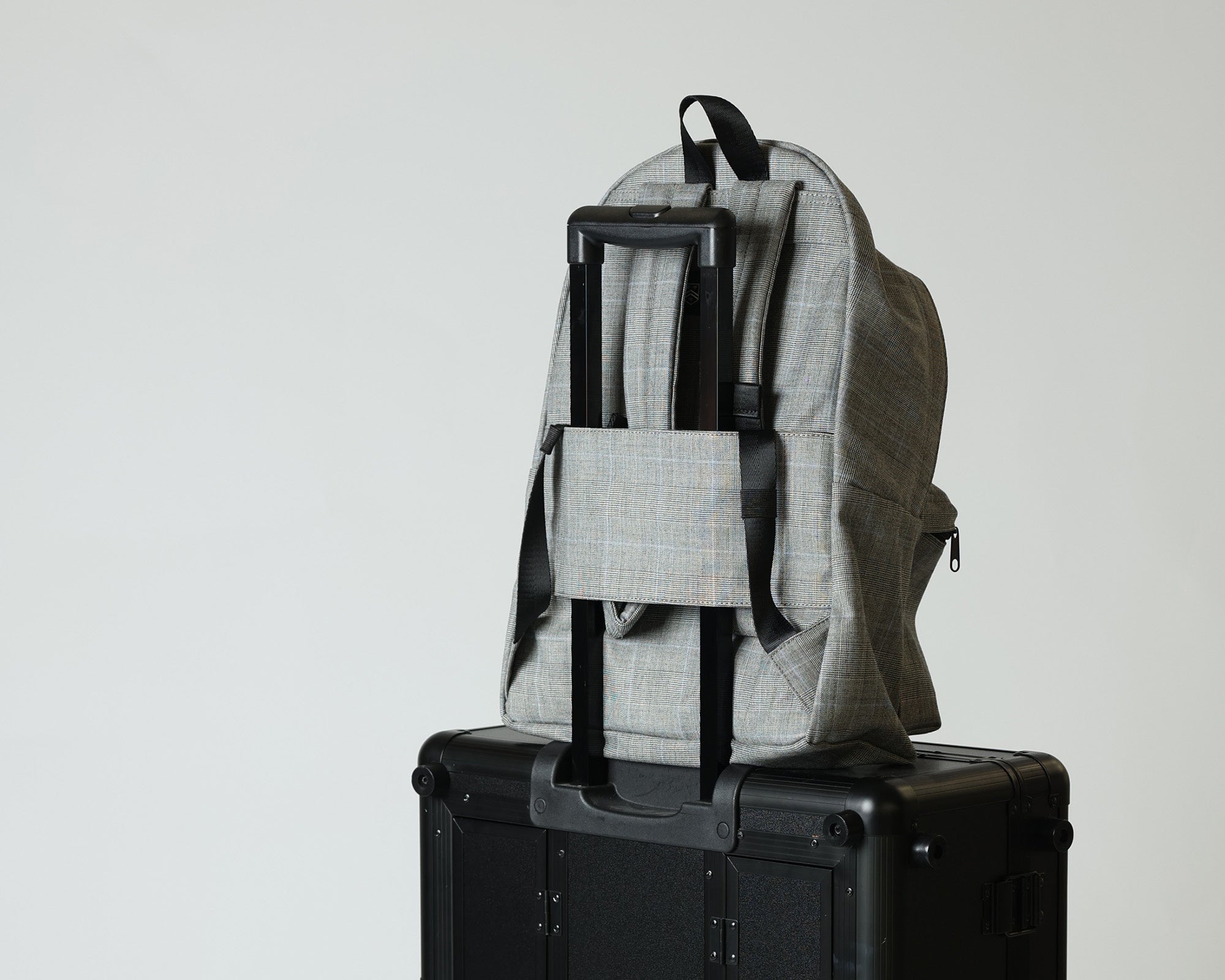 今回、発売する「WOOL BACKPACK(ウール バックパック)」(25,300円税込)は、フランスDORMEUIL(ドーメル)社やイタリアREDA(レダ)社などの欧州メーカーのスーツを仕立てた残りの生地を活用した上質な大人のアイテムです。ドレススタイルに合うシックなデザインは、『KASHIYAMA』のメインターゲットであるビジネスパーソンに向けて提案します。ノートパソコンや携帯が入る収納スペースや、出張時の移動にも便利なキャリーケースと一体となる機能性にも優れたバックパックです。