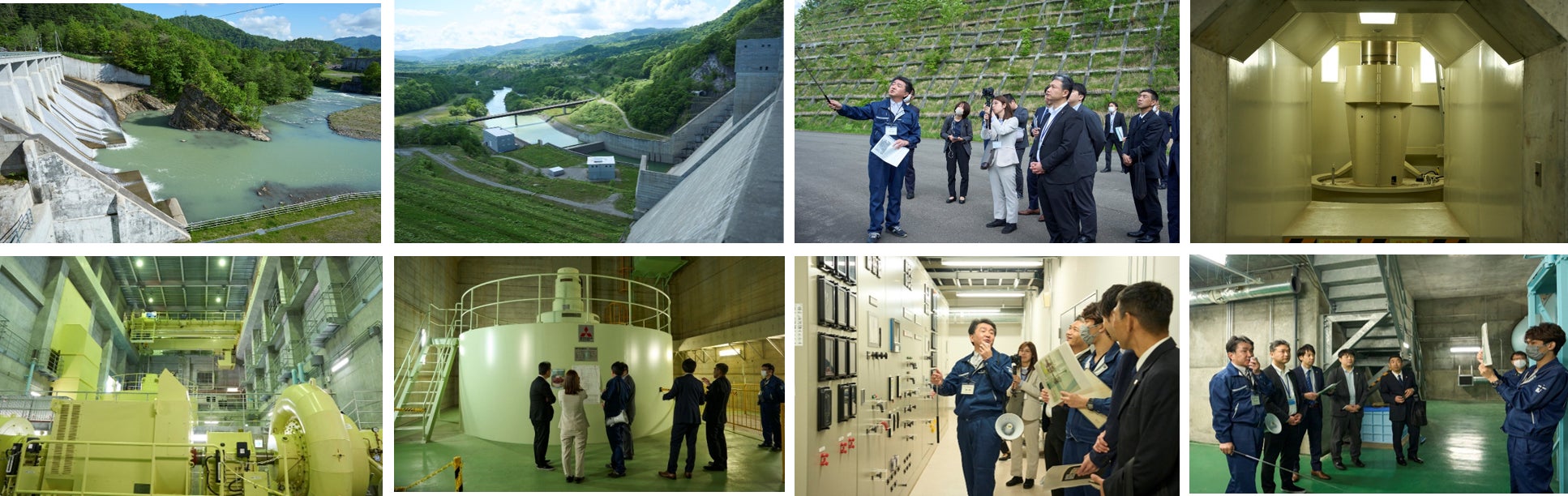 ▼北海道企業局が運営するダム及び発電所を視察する石屋製菓㈱様