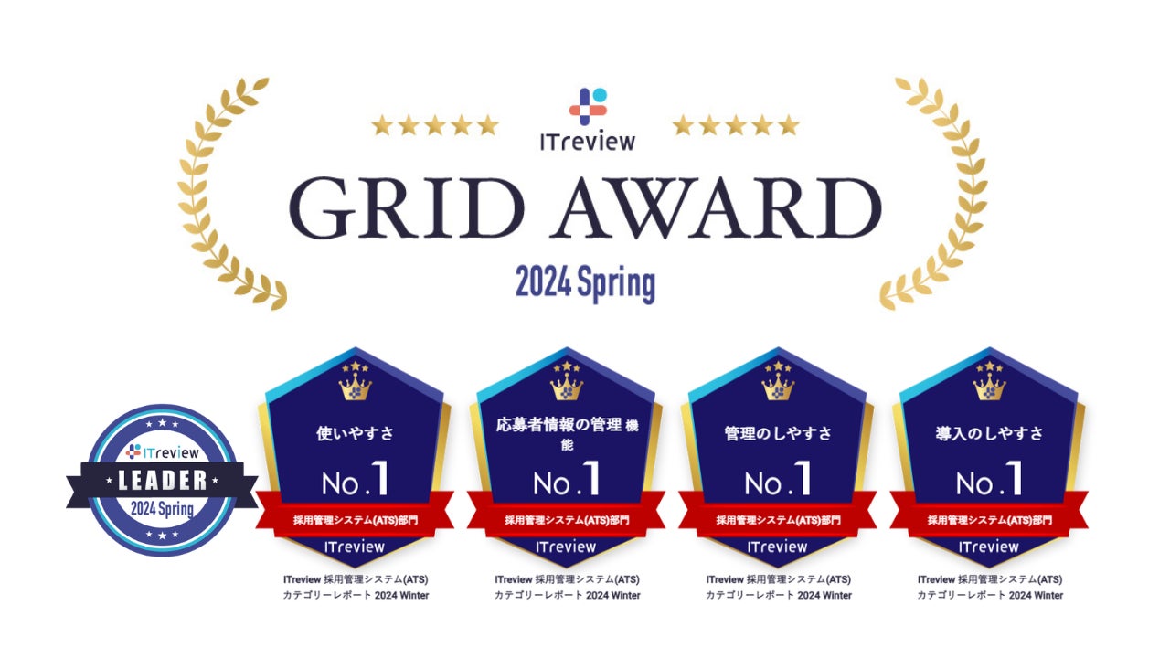▼ITreview Grid Award 2024 Springの採用管理システム(ATS)部門はこちら