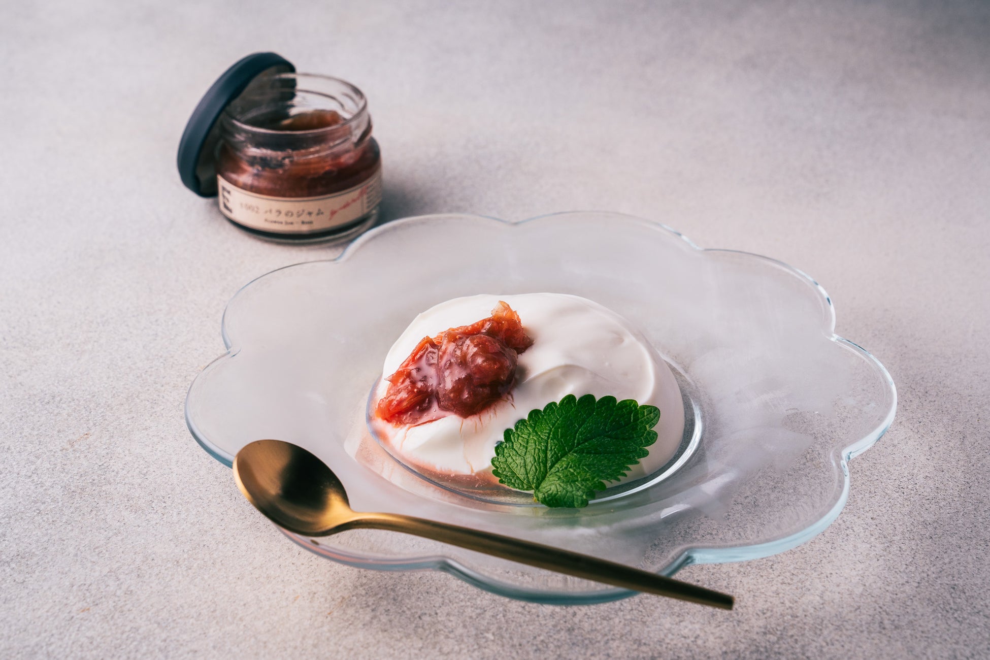 田村浩二シェフによるバラのジャム。世界でも類を見ない素晴らしい香りをもつ「自然栽培ローズ」に、世界一のレストランnomaをはじめとする限られたトップクリエイターにのみ供している希少な食用バラをMIX。複層的かつ最高峰の香りを実現しました。超少量しか採れない品種のため、数量限定のスペシャリテ版です。上質なバニラアイスクリームや、フレッシュチーズ(フロマージュブラン)、ベルガモットなどの柑橘系のサブレにジャムをたっぷりとかけてお召し上がりください。