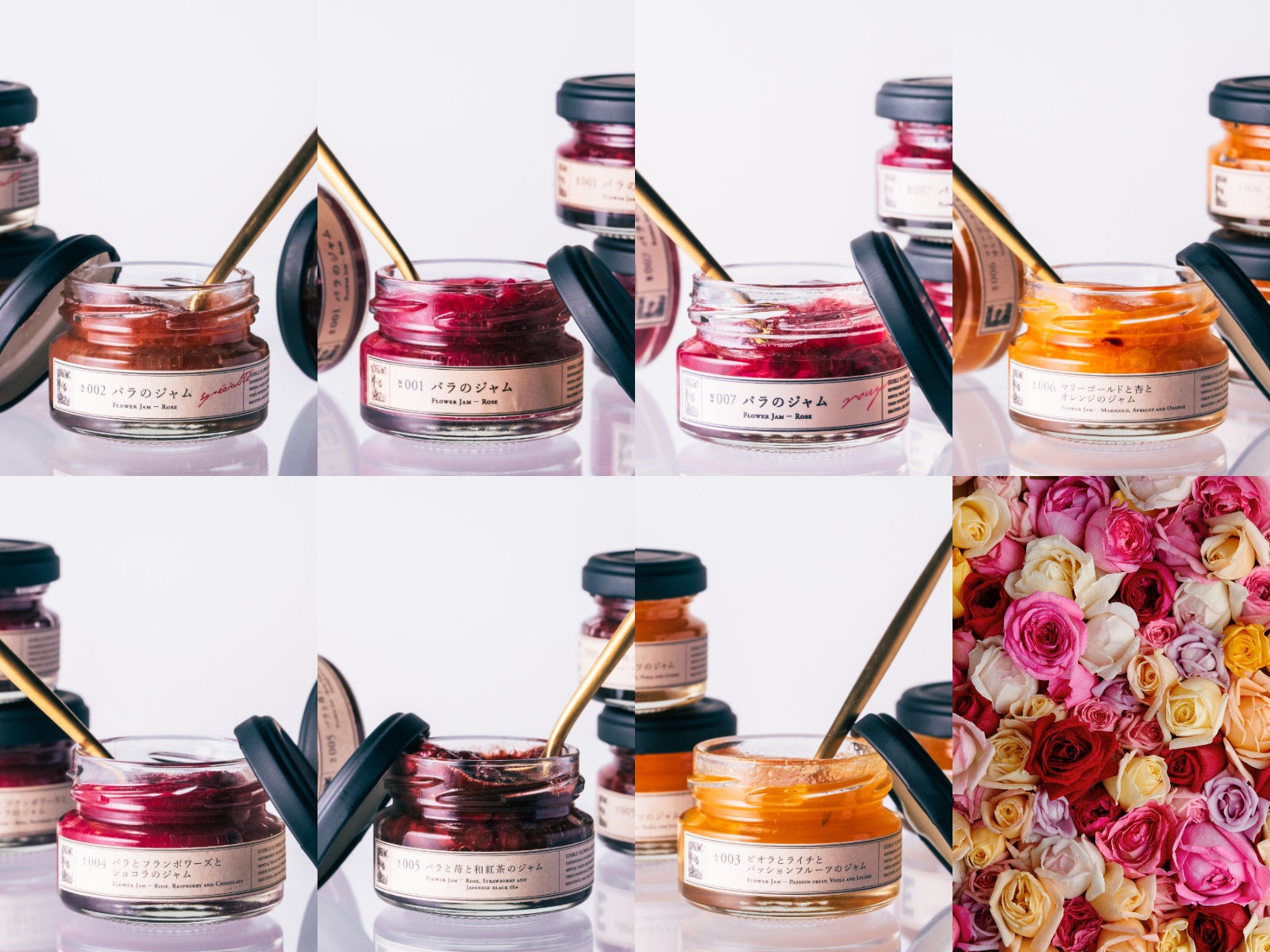 バラのジャムと花と果実のジャムが7種のバリエーションで登場