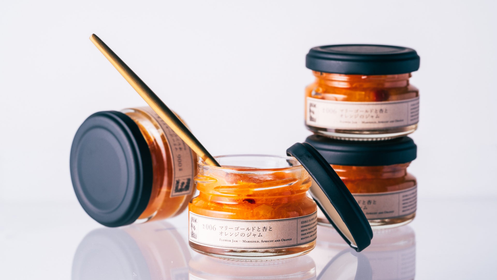 As 青木繁シェフとのコラボレーション。甘酸っぱいアプリコットに、相性の良いオレンジを合わせて、花の中でも複雑な香りを持つマリーゴールドのお花を加えてつくった香り豊かなジャムです。上質なチョコレートのアイスクリームや、ギリシャヨーグルトやフロマージュブランのような濃厚な乳製品、パンにバターとジャムを塗ってトーストするとアプリコットパイのような味わいでお楽しみいただけます。