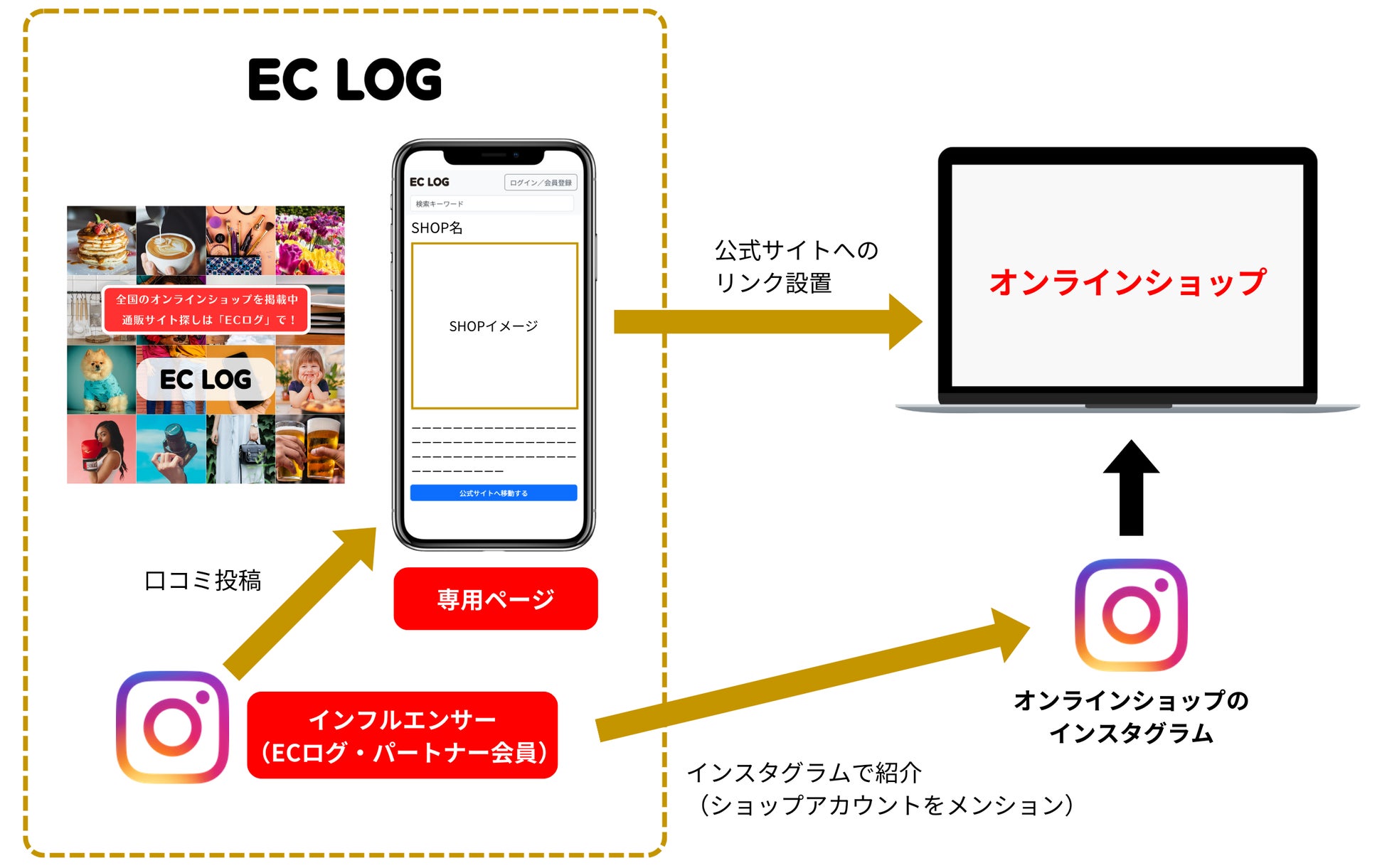 ECログが、集客を増やしたい『オンラインショップ』と、素敵な商品と出会いたい『インフルエンサー』がマッチングできる専用プラットフォームをご提供。