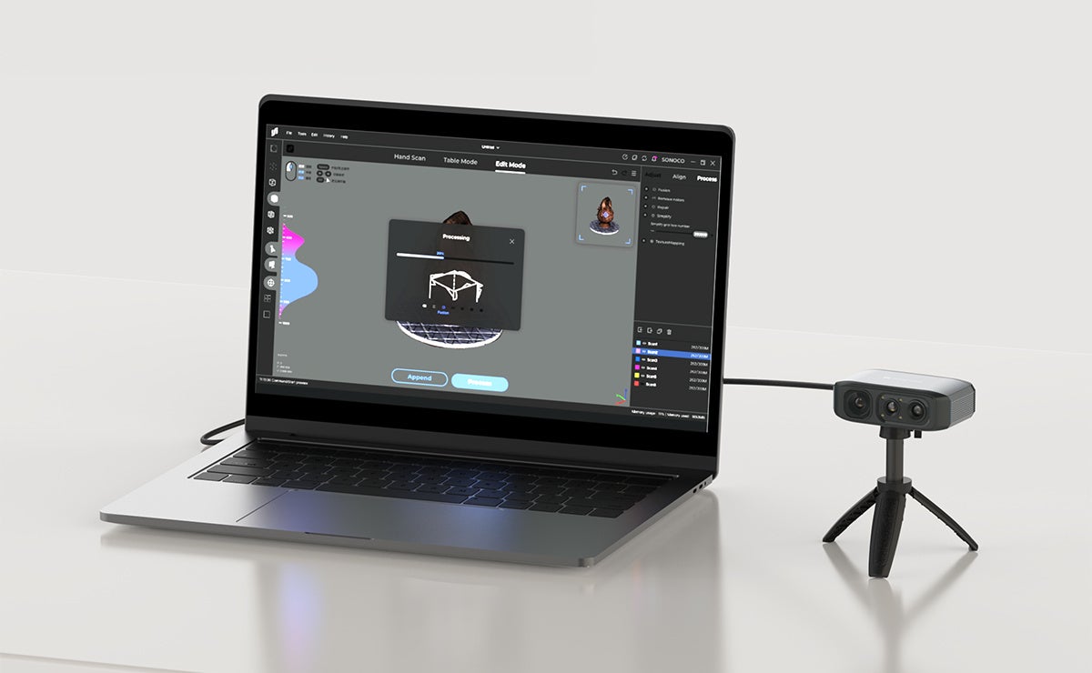 高度なAIトラッキングを搭載し、マーカー不要かつ手ブレ防止モジュールを搭載しているため、誰でも簡単にプロ級の3Dスキャンが可能です。ブルーライトテクノロジーによって0.03mmの高精度を実現しました。