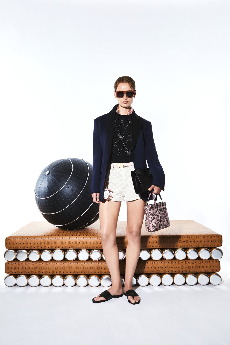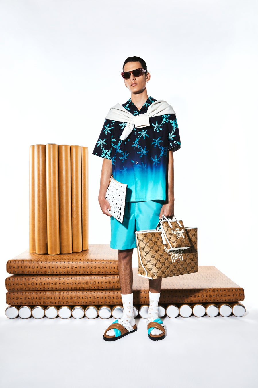 最後に「MCMビーチクラブ」では、ラフィア素材のモノグラムバッグやサングラス、サンダルが、完璧なビーチルックを完成させます。