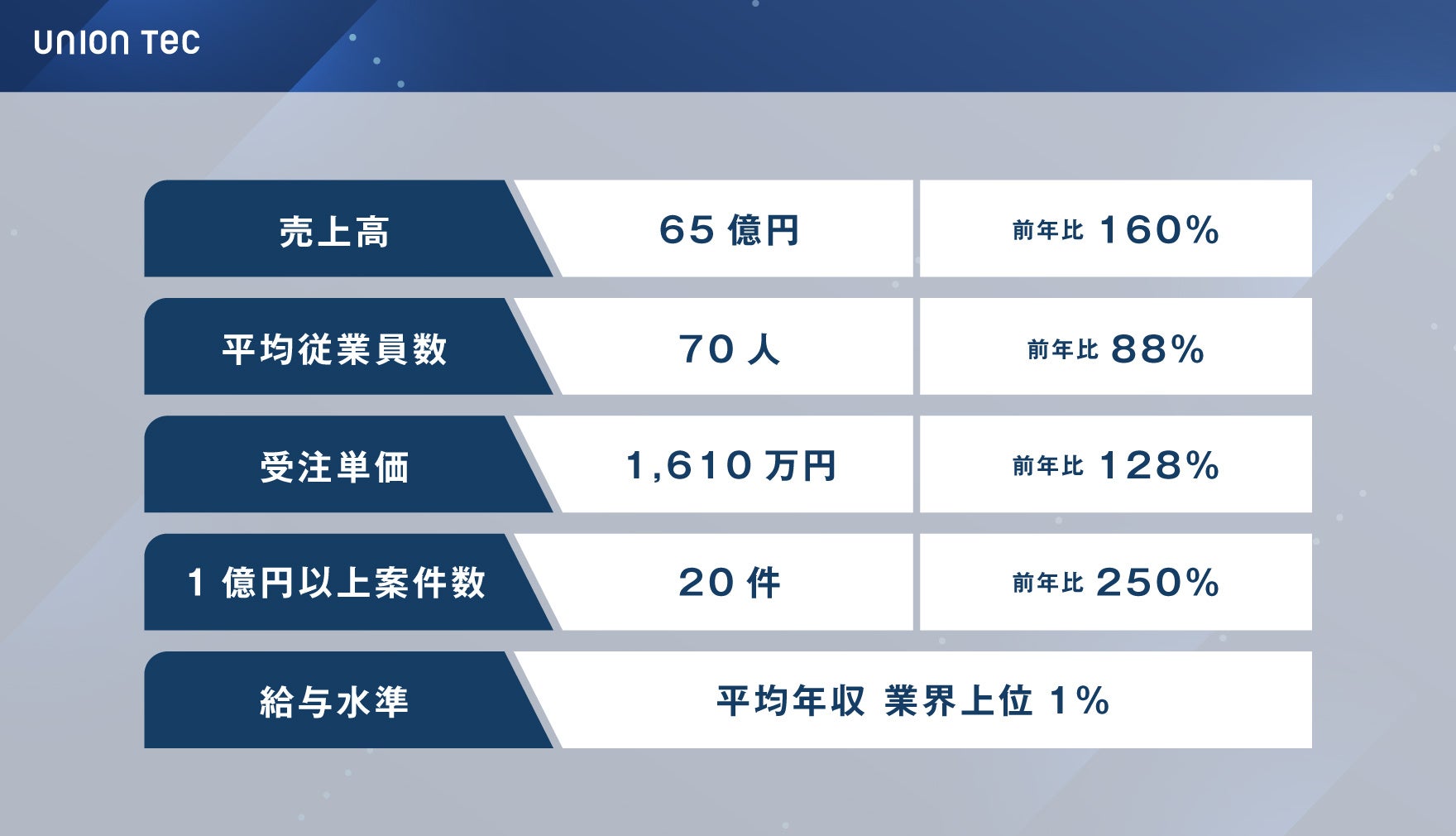 「Build a new standard.」をミッションに、オフィス・店舗の内装デザイン・設計・施工をワンストップで提供するユニオンテック株式会社(東京都渋谷区、代表取締役 大川祐介)は、2024年12月に売上高60億円を突破したことをお知らせいたします。当期(2025年5月期)売上高は65億円に達する見通しです。