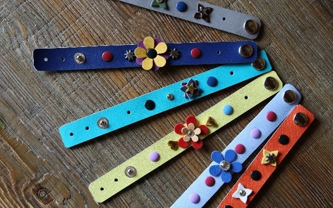 カラフルな牛革とお気に入りのパーツを組み合わせ、自分だけのオリジナルブレスレットを作成。小さなお子さまも楽しめます。