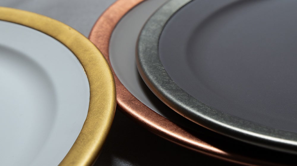 一般的にお皿の破損で多いのは、フチが欠けてしまう(チップする)こと。錫白は、フチを金属(錫)で覆うことでより強度を高め、永く大切に使っていただきたいという想いから生まれました。陶磁器と金属(錫)を組み合わせるという新しい技法を確立し、これまでにないプロダクトの広がりや可能性を目指しています。