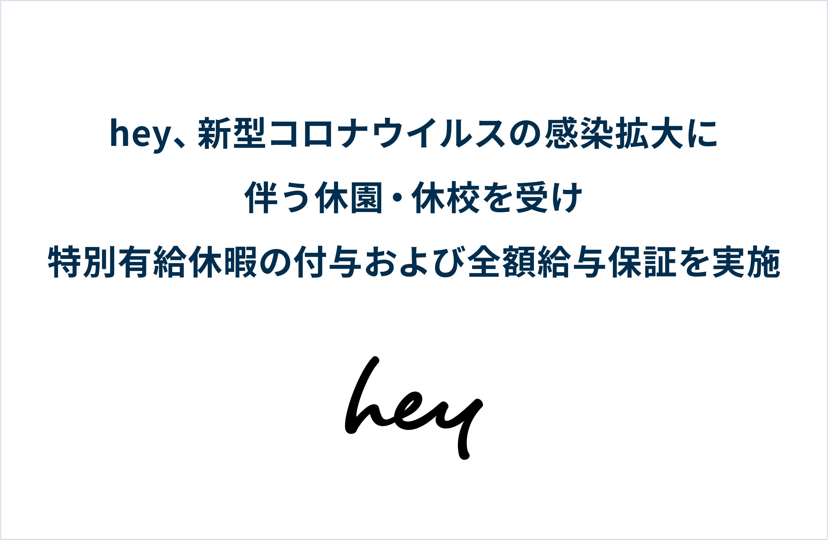 hey、新型コロナウイルスの感染拡大に伴う休園・休校を受け、特別有給休暇の付与および全額給与保証を実施
