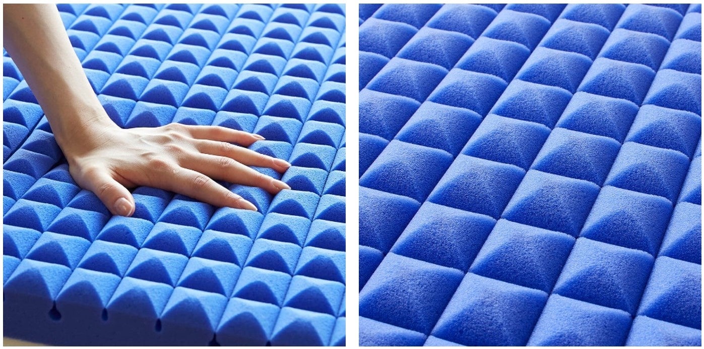 表面はピラミッド形スリットで構成されており、更に3×3マス毎に溝を入れる事で、身体へのフィット感が上がり寝返りがしやすくなります。