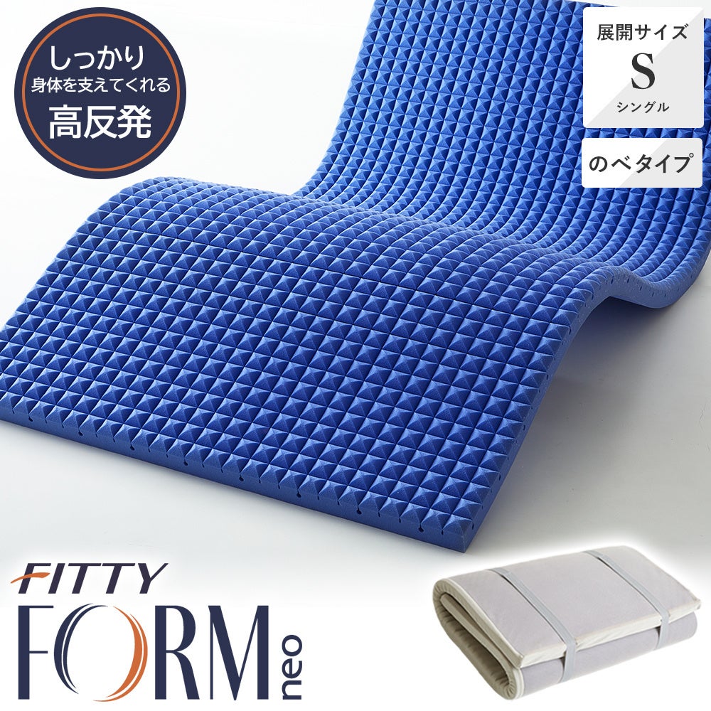 従来モデルの【ツインフォームNEO】から凹凸構造のある上層のみを使用したマットレスパッド【フィッティーフォームNEO】は、ダイヤカットされた高反発ウレタンが身体をしっかり支え、体圧を分散してくれるなどの機能性が高いながらも、お手持ちの敷寝具にプラスするだけで使用可能といったエントリーのしやすさやコスパ面の良さも魅力です!