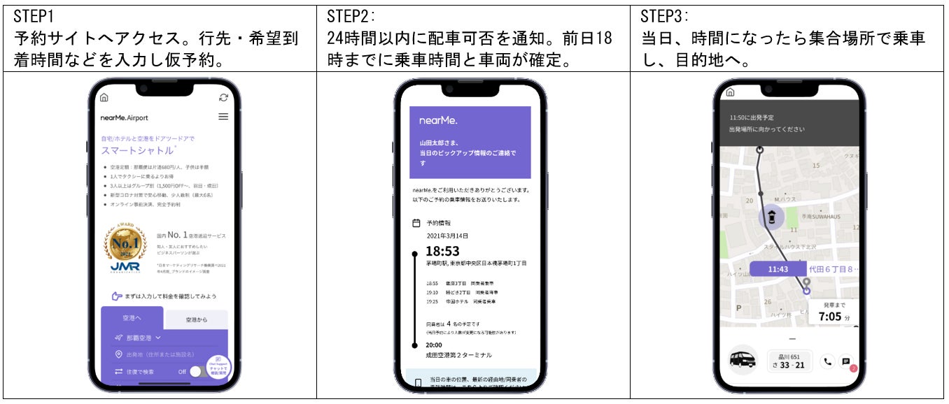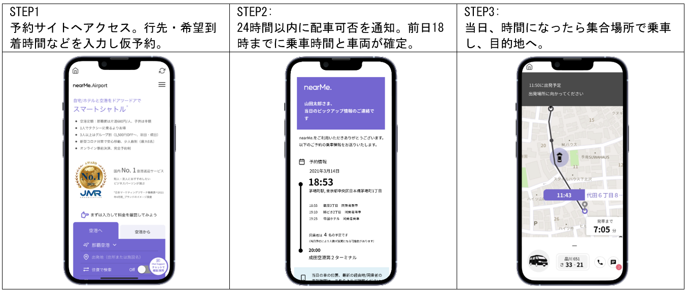 ・nearMe.Airport(エアポートシャトル)URL:https://app.nearme.jp/airport-shuttle/