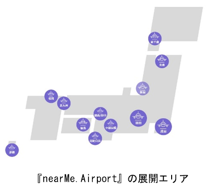 2019年夏より独自のAIを活用した最適なルーティングで、空港と市内とをドアツードアで結ぶ空港送迎、『nearMe.Airport(ニアミー エアポート)』を展開しています。現在は、全国12の空港(成田国際・中部国際(セントレア)・関西国際・大阪国際(伊丹)・東京国際(羽田)・新千歳・福岡・北九州・那覇・青森・南紀白浜・徳島)と、空港周辺の都市部でご利用いただくことができます。対象エリアであれば、出発地となるご自宅から空港、そして空港から最終目的地まで一気通貫でつながるため、公共交通機関の乗り換えがなくなるなど、ストレスフリーな移動体験を提供することができます。nearMe.Airport(ニアミー エアポート)はこれまで延べ12万名様以上のユーザーの方々にご利用いただいています。