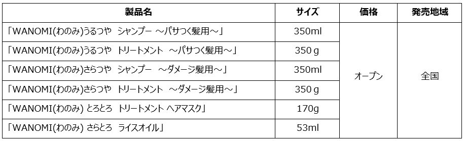「WANOMI(わのみ)」は、浸透力の高い米ぬかオイル*2を全ラインアップに配合した、米ぬか美容発想のプレミアムヘアケアラインです。髪質の変化を感じながらも忙しい日々を過ごす皆さまに、もう一度艶髪を得られるよう誕生いたしました。髪の仕上がりや、香りのお好みに合わせて選べる2種のシャンプー&トリートメントとヘアオイルに加え、今年3月には、シリーズ最高濃度の補修成分配合で厚くて硬い日本人のキューティクルへもしっかり浸透し補修する「とろとろ トリートメント ヘアマスク」を新発売。ライン使いで、さらに輝く艶髪へ導きます。